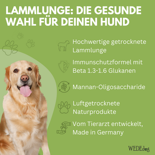 WEDEdog PURE+ Lammlunge getrocknet I Lammlunge getrocknet für Hunde mit Immun+ Schutzformel I Lammlunge Hund in Premium-Qualität